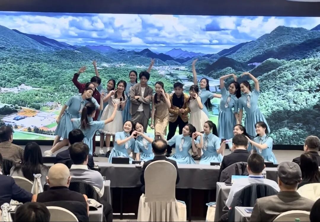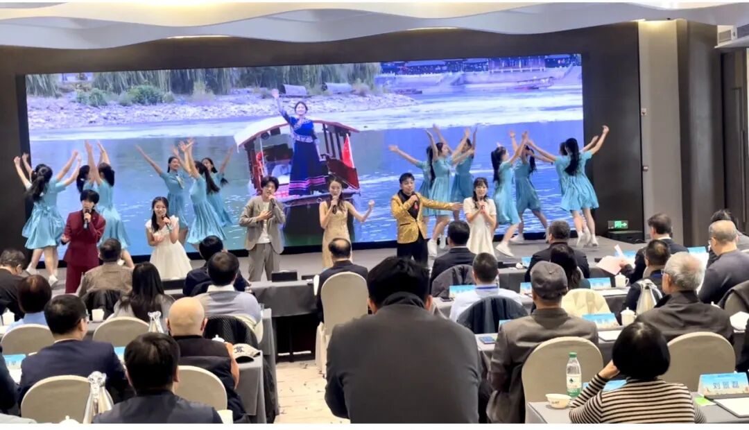 伴随着昂扬温暖的旋律,学校学子闪亮登场。音乐班的同学们歌声清澈嘹亮、情感充沛,将“天下相亲与相爱”的深情主题娓娓道来;舞蹈班的同学们舞姿翩跹,活力四射,以富有现代感与亲和力的编排,生动演绎了四海一家的和谐画卷。他们的表演不仅展现了扎实的专业功底与昂扬的精神风貌,更巧妙地呼应了本次推介会促进重庆与山东两地文化交流、客源互送的核心宗旨,赢得了现场重庆市文旅部门代表、山东旅行商及媒体嘉宾的广泛赞誉。
