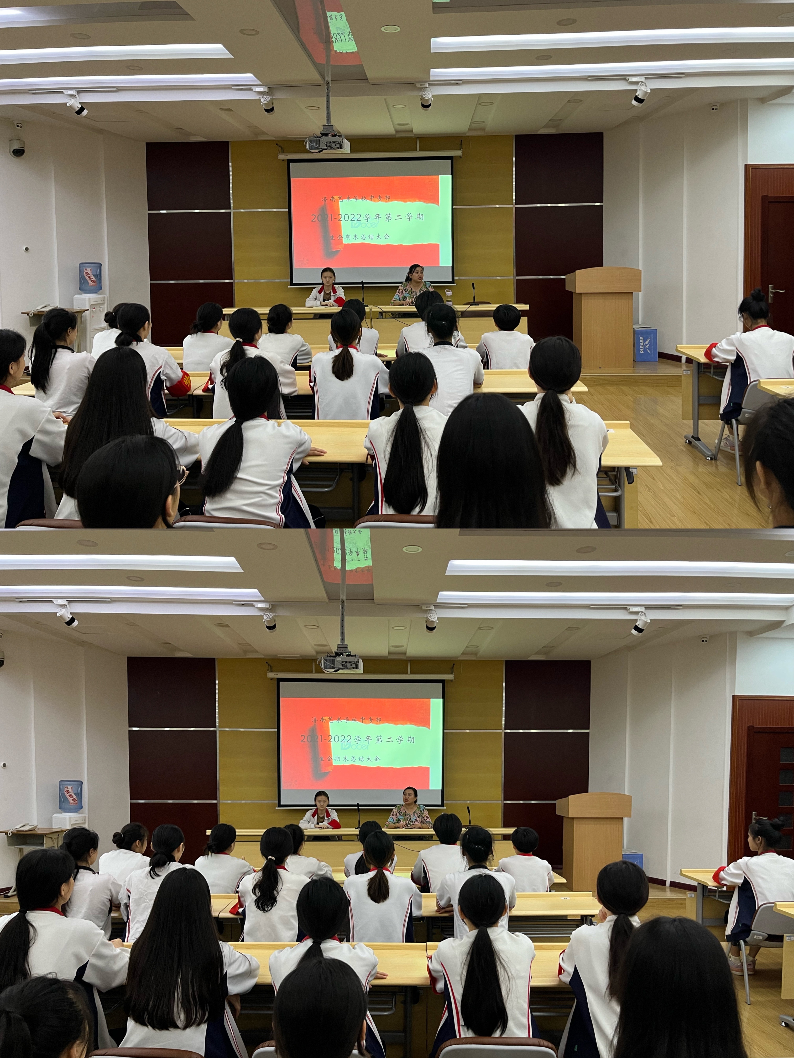 时光飞逝,又一个学期即将画上圆满的句号。为推动济南艺术学校中专部学生会工作更长远的发展,提高学生会干部工作能力,2022年7月4日晚,济南艺术学校中专部学生会在一楼报告厅组织召开了期末总结大会。表彰先进,总结过去,致力未来。会议由学生会负责老师王璐瑶主持,中专部副主任郭倩参会作总结发言,学生会全体成员参会。