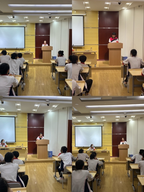 首先,学生会各部门的部长依次上台进行本部门的学期工作总结。各部门部长精心准备,既肯定了本学期工作的成绩与亮点,又指出下学期需要改进的地方,明确今后的工作方向及目标。之后学生会秘书长宫梓嘉同学对这一学年的学生会工作进行回顾和总结,她给大家分享了在学生会的成长,并对不断培养和引导学生会的领导、老师表示感谢,还表达了对今后工作不断完善、积极进取的态度。