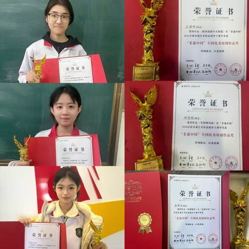 在非遗文化传承领域,济艺学子积极参与创作实践。在“非遗中国”2026首届非遗春晚艺术展评大赛中,2024级数媒班王佳琳、刘佳璇,2025级数媒班张潇涵三位同学的作品贴合非遗主题,荣获“非遗中国”全国优秀原创作品奖;2024级数媒班杨欣蕊、刘睿轩、江禹萱三位同学获得全国优秀参与奖,以作品助力非遗传播。