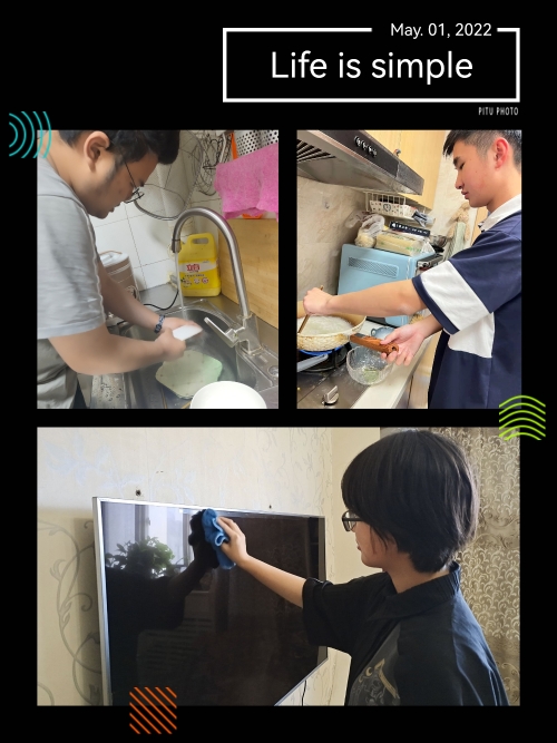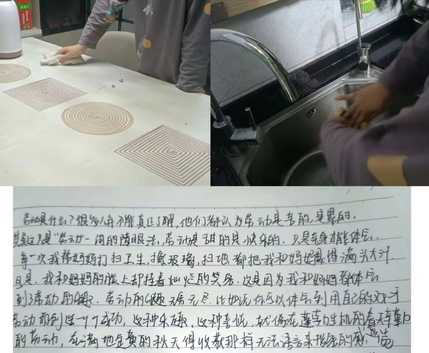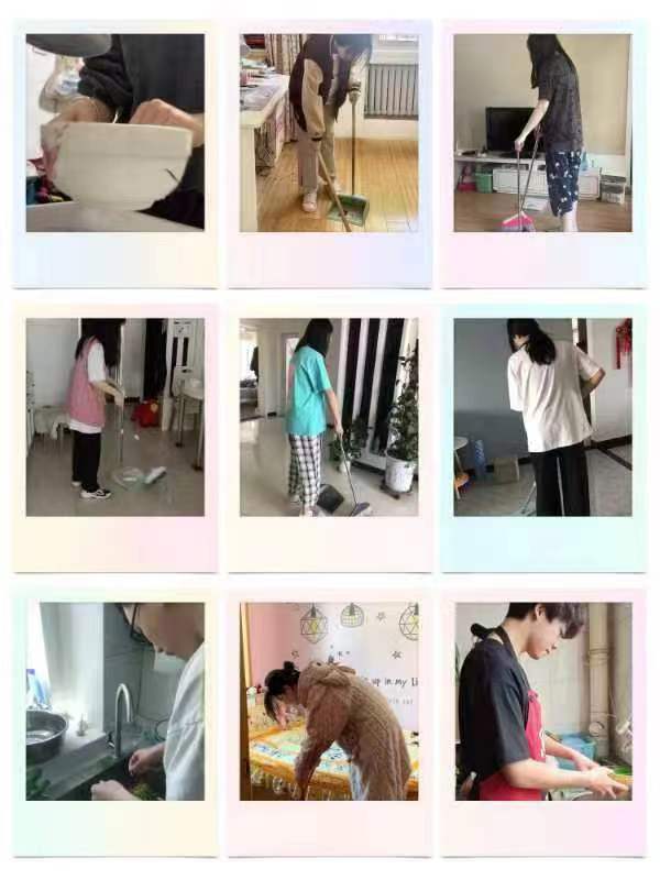 各班学生在班主任的号召下,充分利用居家时间,抓住衣食住行等日常生活中的劳动实践机会,亲自动手,自觉参与,随时随地、坚持不懈地进行家务劳动,学习必要的家务技能。在理解父母平日的辛苦、为父母分忧的同时,也逐渐提升了自己的各项生活能力。在劳动的过程中,学生们既深刻体会到了劳动创造美好生活的过程,切身感受劳动的光荣、快乐与成功,又弘扬了积极向上的劳动精神和认真负责的劳动态度。